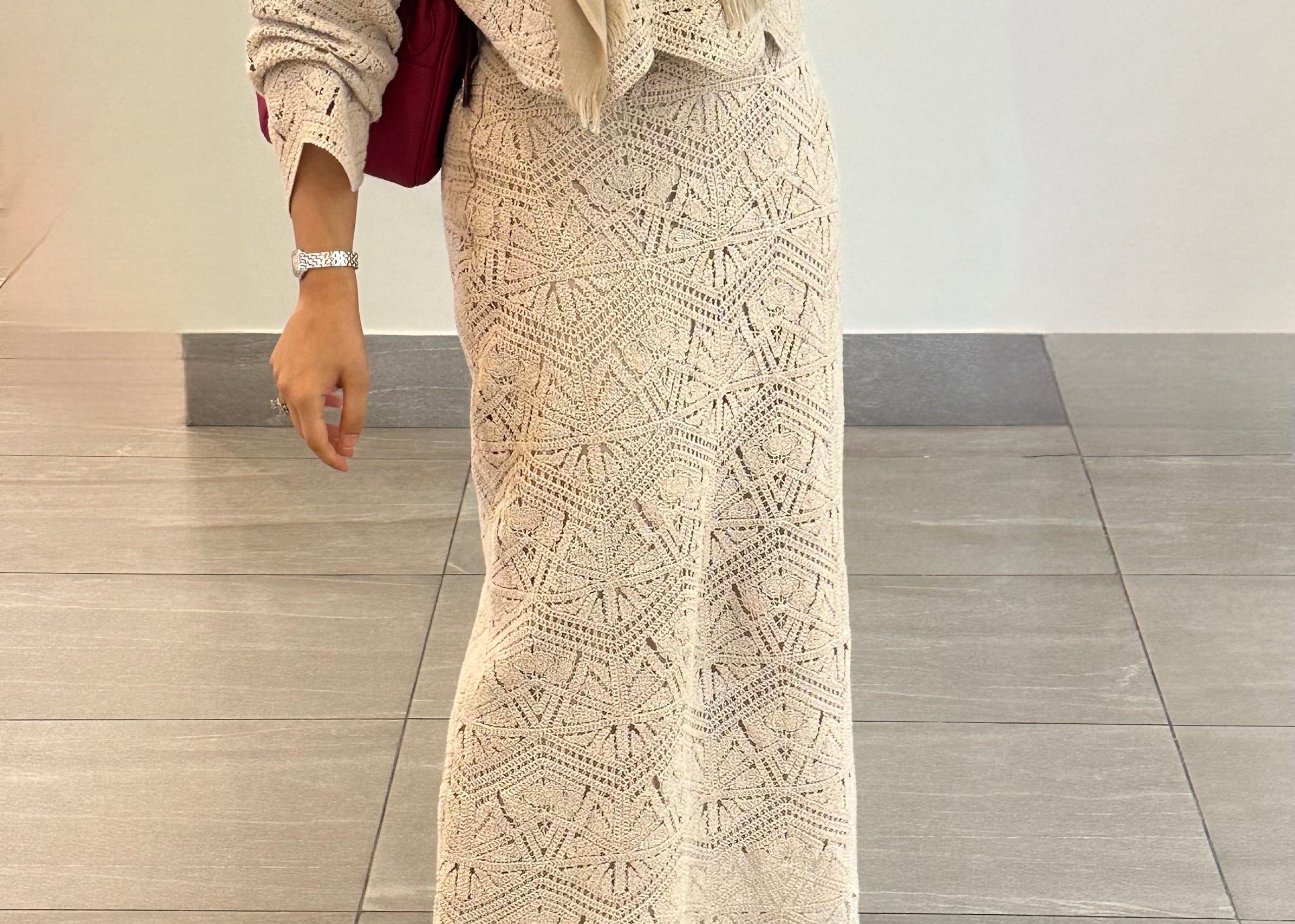 - بلوزه وتنوره من قماش التريكو مبطنه بالكامل.