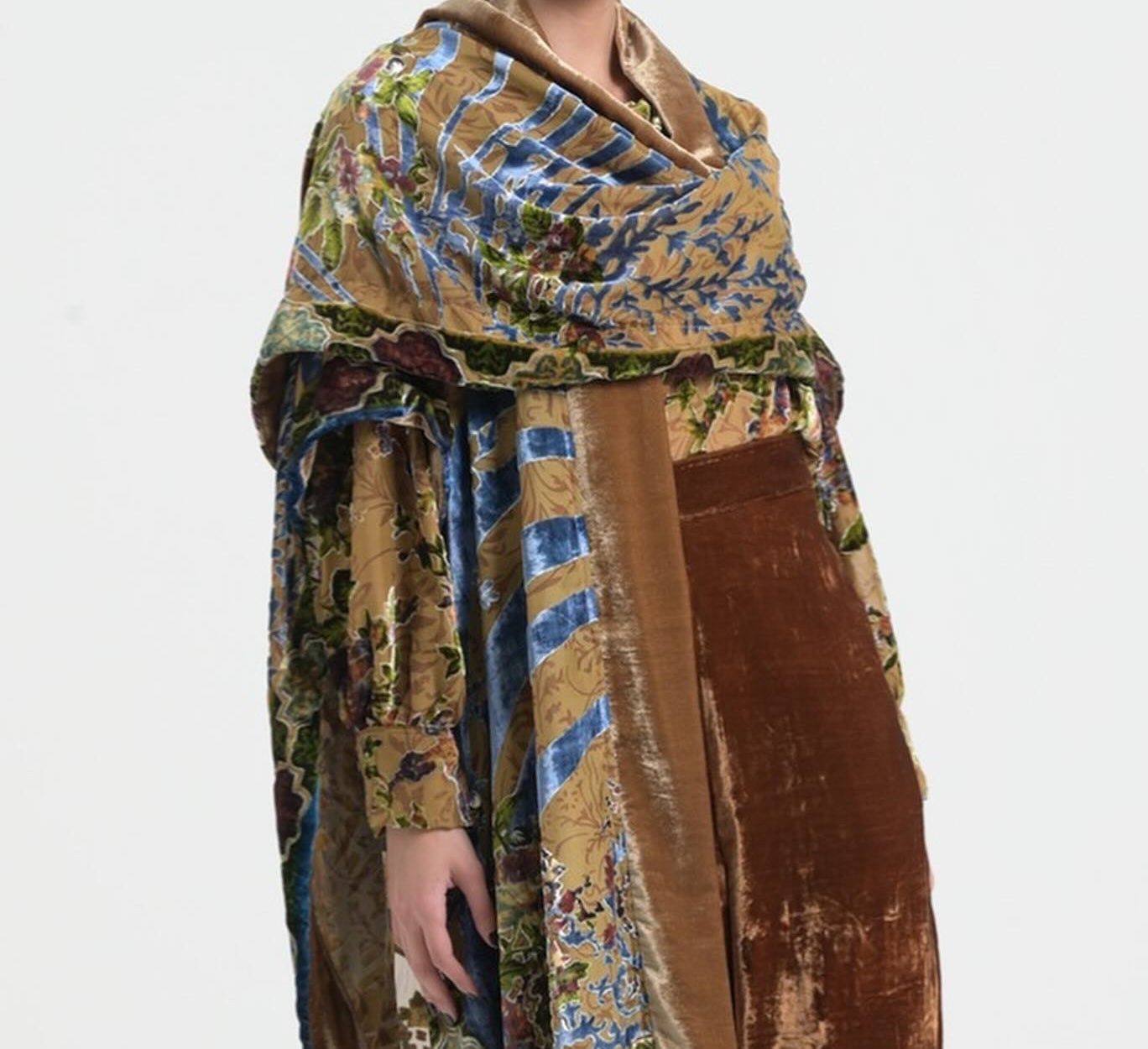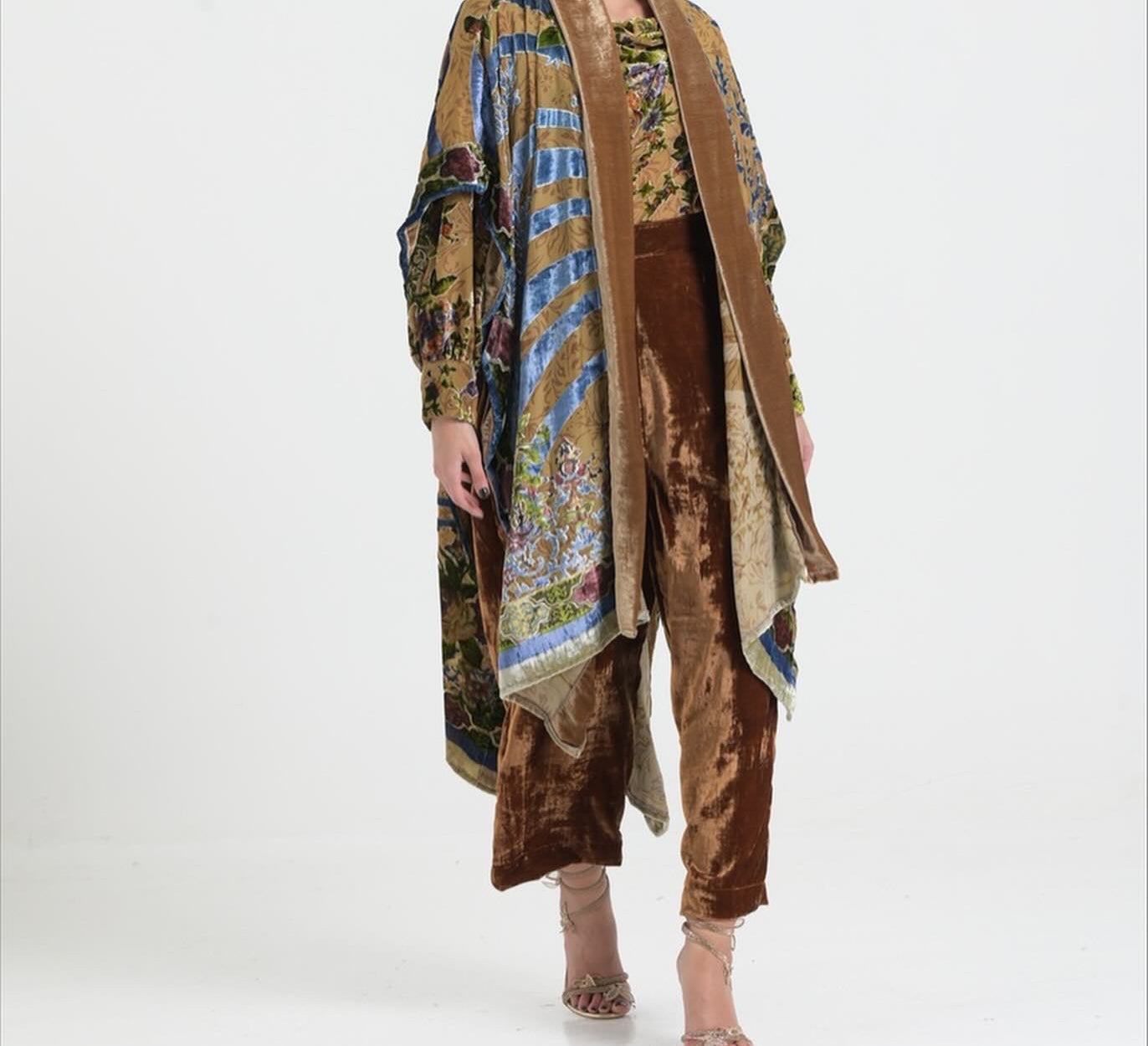 - ست مخمل حرير : قميص ، بنطلون وشال .