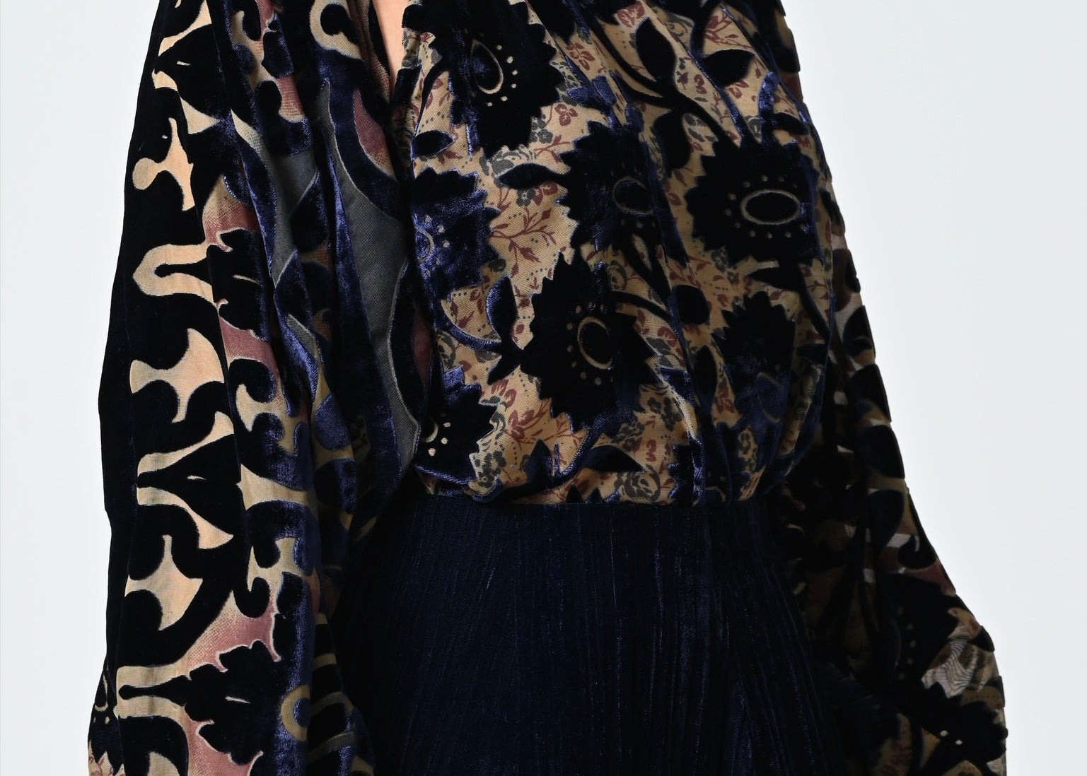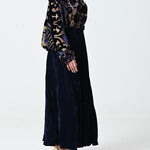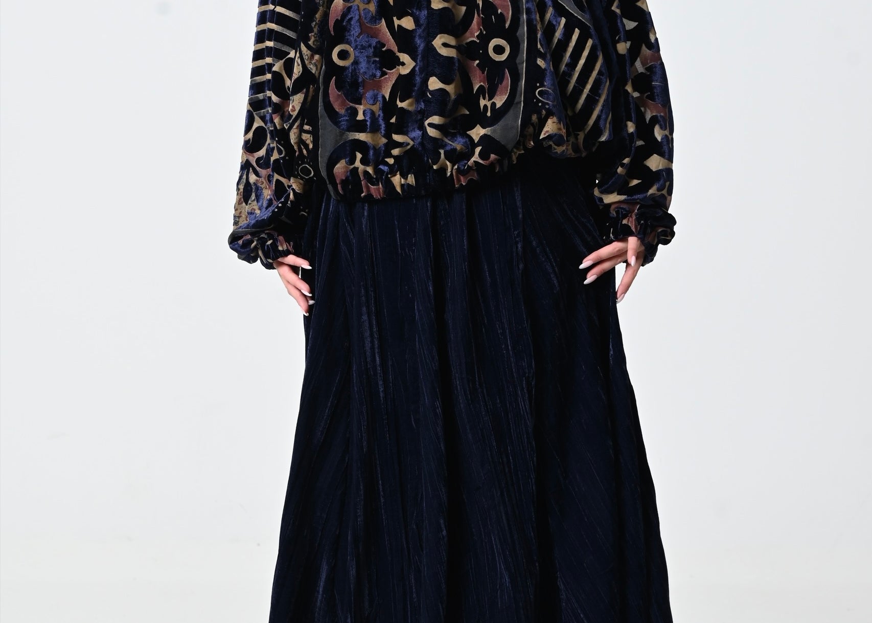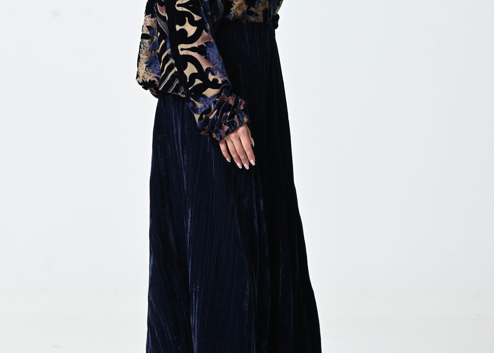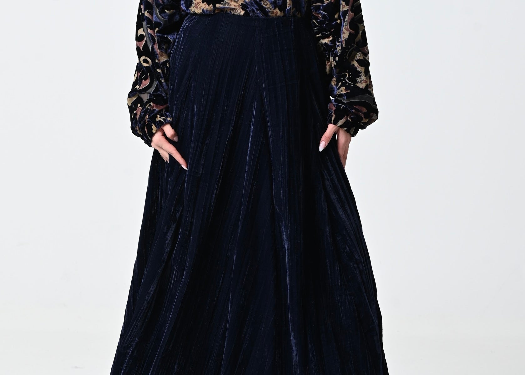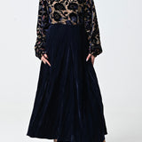 - بلوزه: مخمل وشيفون بقصة عنق مرتفعه